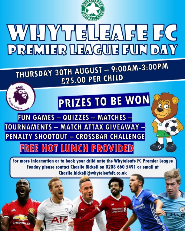 Whyteleafe Football Clubs Premier League Fun Day is BACK! All things Premier League will be returning again this year with new exciting additions to the day and loads of fun with the start of the Premier League only two weeks away.